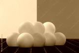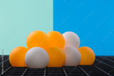 Abstract still life with orange balls on a colored background.