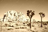 Color toned picture of Joshua Tree National Park scenery, California, USA.