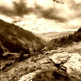Incredible mountain landscape with overcast clouds in the sky. Transfagarasan highway, the most beautiful road in Europe ,Romania. Fagaras Ridge
