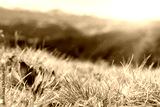Magic pink crocuses flowers on spring mountain under sunlight. Wonderful nature Background