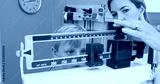 Doctor weighing little boy patient on scale in exam room. Female pediatrician and child performing regular check up