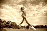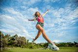 Girl jumping bottom view