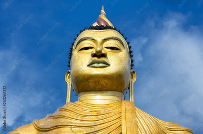 Buddha big statue close-up in the old temple of Wewurukannala Vihara, Dickwella, Sri Lanka