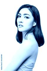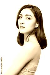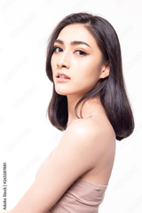 Portrait charming beautiful young asian woman. Attractive beautiful girl is good looking. Glamour lady has nice skin, beautiful face. She wear tube top. Gorgeous woman has confident. isolated on white