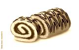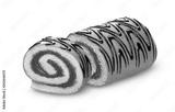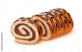 Sponge cake roll isolated on white background, swiss roll with chocolate cream