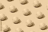 Pastel blue ice cream scoops pattern on brown background. Minimal summer food concept.