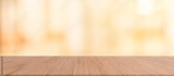 modern brown wood tabletop with blurred restaurant bar cafe light color background for promote and advertise product on display
