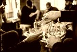 A group of people tasting Japanese whisky. Concept of fine alcohol. Master class and degustation of whisky.
