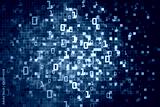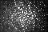 Data cloud computer binary data matrix. vertical digital binary code moving motion downward. light up blue one and zero text flowing down. black background pixels space with multiple layers coding.
