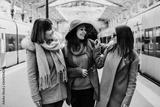 .A group of young friends waiting relaxed and carefree at the station in Porto, Portugal before catching a train. Travel photography. Lifestyle.