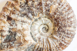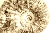 Spiral ammonite close up. Extinct cephalopod mollusk of antiquity. Background Macro Image.