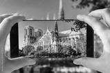 Tourist taking photo of Notre Dame de Paris in summer, France