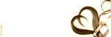 long blond hair donation put like heart with lavender ribbon as symbol of fight against cancer on white background. Top view. Natural material for making wig for patients. Horizontal banner copy space