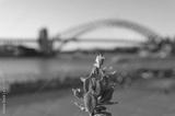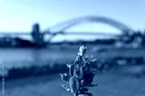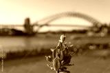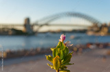 Close up of flowering bush plant with Sydney Harbour Bridge on the background