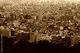 Aerial view of urban cityscape with residential and office buildings in Tokyo