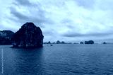 Seascape with spectacular rock formations in Halong Bay area in Vietnam