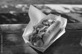 Close up of hot dog with mayonnaise and ketchup with onion rings