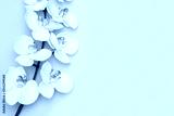 Orchid flower on a pink background, space for a text, flat lay. Top view