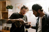 Freshly Brewed Single Origin Roasted Coffee Blooming and Brewing in Glass Chemex Vase
