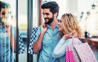 Young couple in shopping. Consumerism, love, dating, lifestyle concept