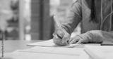 Woman write on the note for studying with cellphone