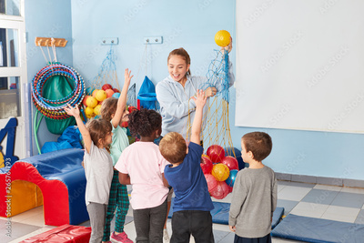 Sportlehrerin und Kinder in der Turnhalle