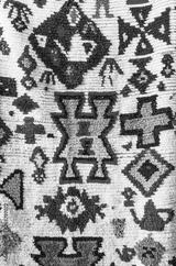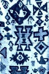 Colorful moroccan carpet with oriental ornaments for sale on a street shop in Essaouira, Morocco