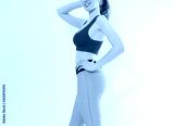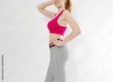 Young sporty girl in sport wear clothes isolated on white background. Happy weight loss woman body concept. Athletic body and adult activity. Copy space and banner