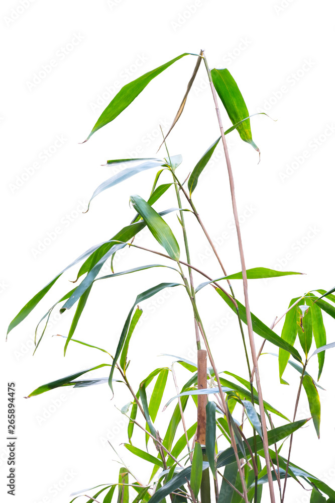 Bamboo leaves isolated on white background.Leaf (Dendrocalamus strictus Nees); Green Bamboo leaves are suitable for product design.