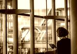 Senior people use smartphone communication with friends and family. Senior woman texting on mobile phone. Back view of Caucasian businesswoman in modern building. Elderly people addict social media.
