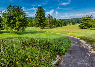 Pathway winds through summer park in North Carolina.