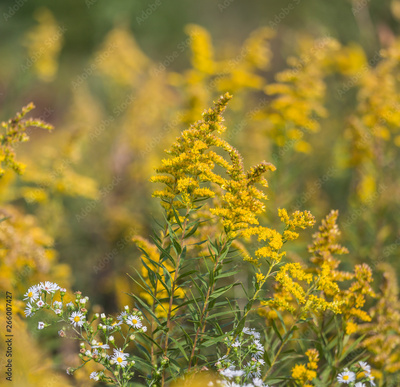 Field of Goldenrod flower or Solidago Canadensis, honey plant, selective focus_.