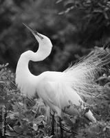 beautiful white egret in spring breeding plumage