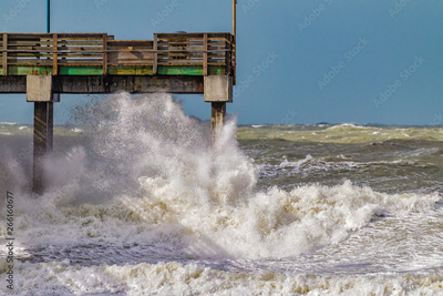 High surf pounds Venice coastline due to El Nino during January 2016