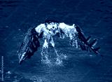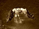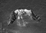 Osprey leaving water with out his catch., black & white