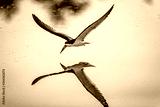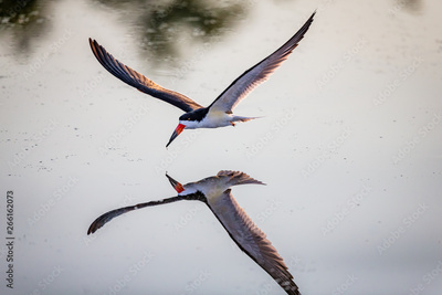 skimmer fishing with reflection in water