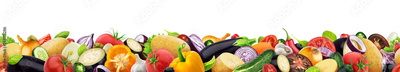 Different vegetables isolated on white background with copy space, border made of vegetables assortment, seamless pattern
