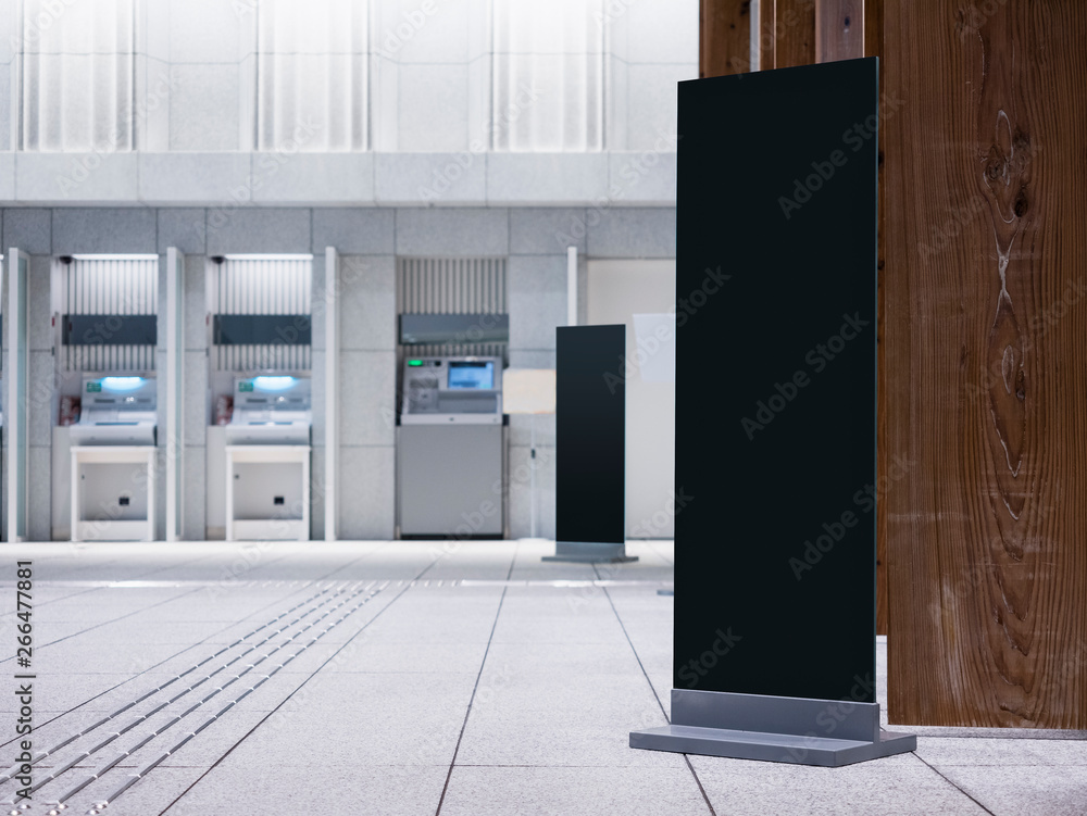 Mock up Black Sign stand vertical in Modern building directory Business Office building