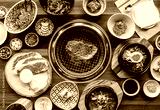 Full set of beef and pork ready for grill on stove serve with vegetable,soup and rice and side dish, Korean style barbecue