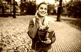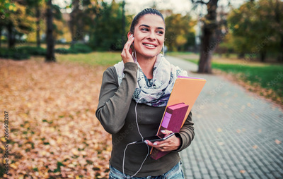 Campus life. Portrait of a young student with mobile phone and books. Education, fashion, lifestyle concept