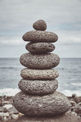 Color toned picture of a stone stack on a beach, balance and harmony concept, selective focus.