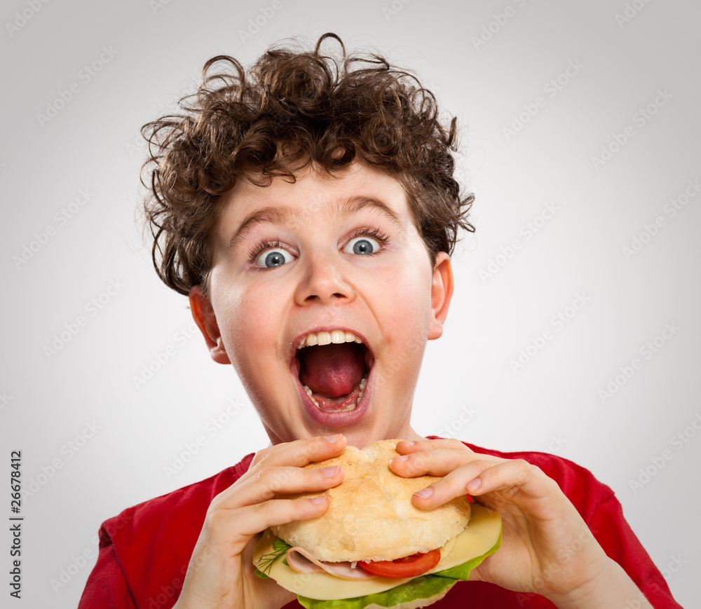 Boy eating big sandwich