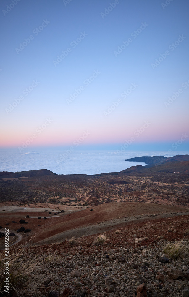 View from Teide Volcano at dusk, Tenerife, Spain.