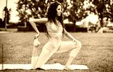 Stretching exercises. Young woman doing fitness outdoors. Sport, fitness, recreation concept