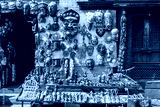 Wooden masks and handicrafts on sale at shop in the Thamel market, Thamel District of Kathmandu, Nepal.