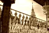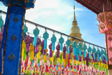 Traditional paper lanterns hanging on the rows in Wat Phra That Hariphunchai, Lamphun province of Thailand during Yi peng (or Yee peng) festival.