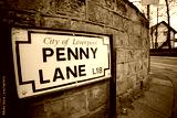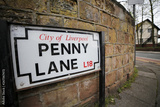 Penny Lane Street in Liverpool. Penny Lane road sign made famous by the Beatles song. A popular tourist destination in United Kingdom