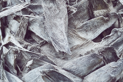 Close up picture of a palm tree trunk, color toned natural background or texture, selective focus.