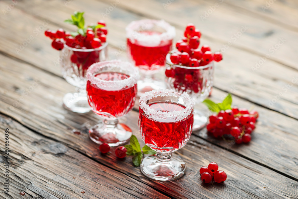 Red currant liquor with sugar and mint