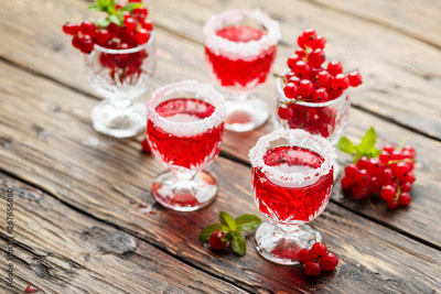 Red currant liquor with sugar and mint